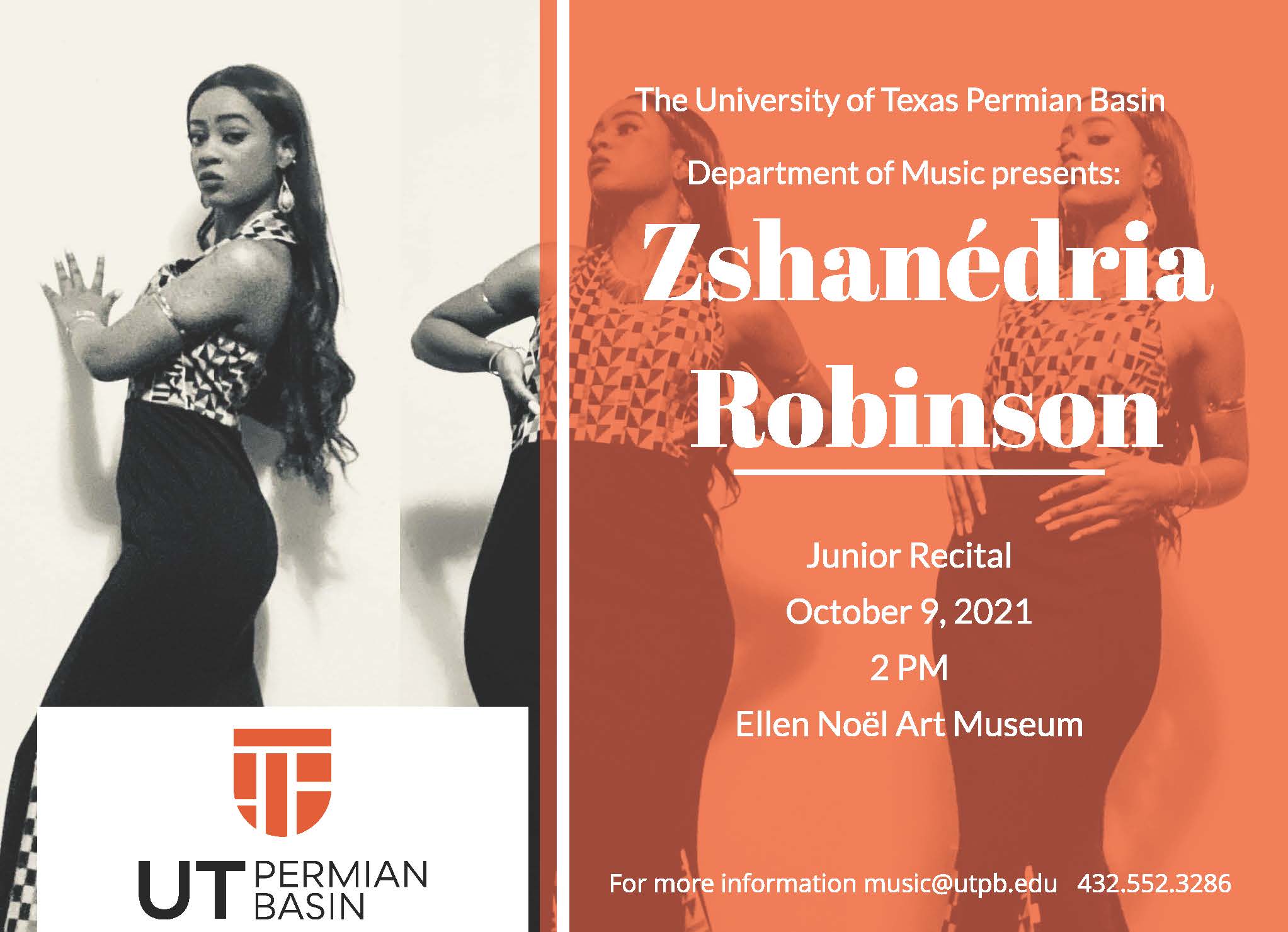 Music@UTPB presents Zshanedria Robinson – Junior Recital October 9, 2021 | 2PM | Ellen Noel Art Museum